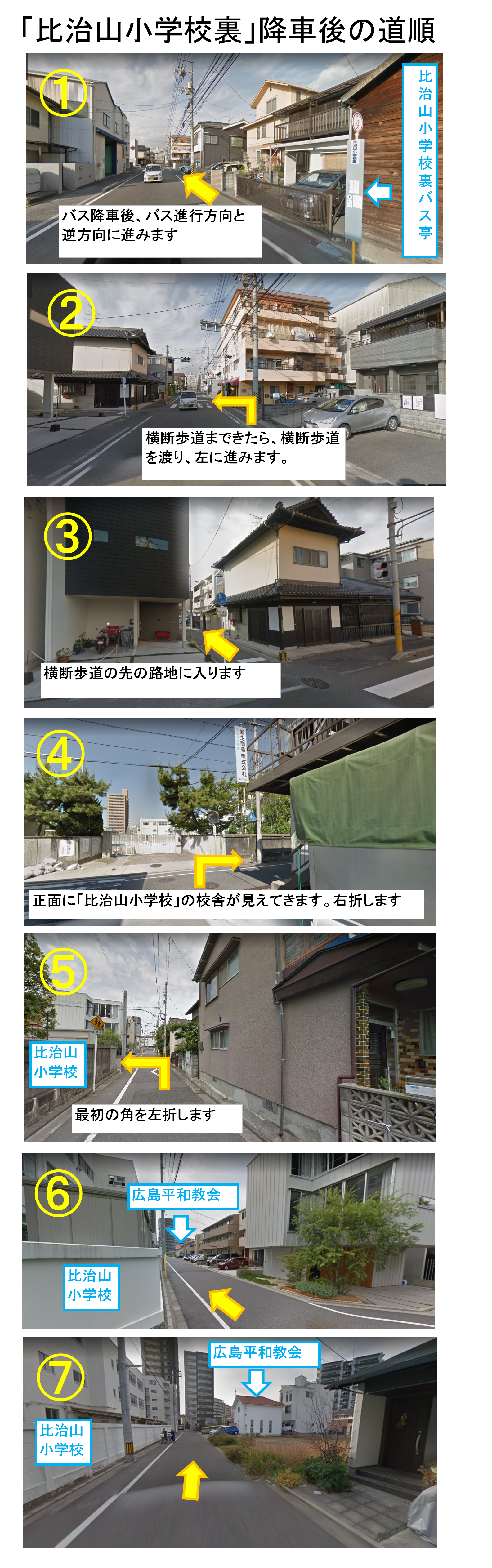 「比治山小学校裏」バス停から教会までの道順はこちらをご覧ください